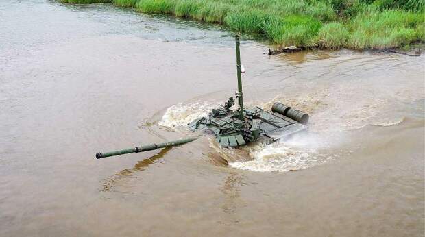 Российские танки Т-72 прошли по дну реки Томь в Кемеровской области. Соответствующее видео опубликовал телеканал РЕН-ТВ.