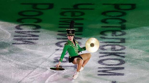 Зал неистовствовал.За несколько минут Елизавета сменила три инструмента – саксофон, барабан и тарелки, с которыми она распласталась на льду. Видео можно посмотреть на Youtube.