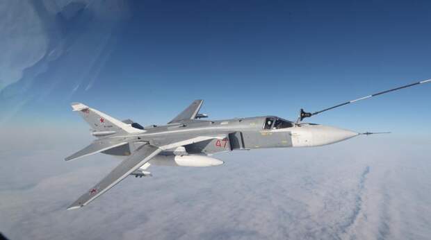 Минобороны опубликовало качественное видео воздушной заправки бомбардировщиков Су-24, Су-34 и перехватчика МиГ-31БМ.