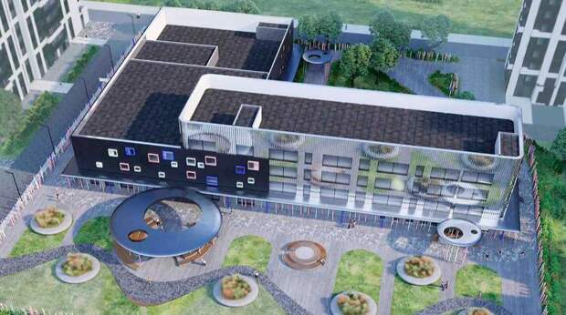 На участке предусмотрены зона отдыха, спортивная площадка для игр в волейбол, баскетбол и занятий гимнастикой, а также пешеходные дорожки с интересным ландшафтным дизайном. К зелени на территории отнесутся с заботой – все растущие деревья сохранят, дополнительно высадят новые.