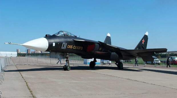 Итальянское издание The Aviationist рассказало о том, как в понедельник, 26 августа, организаторы авиасалона отбуксировали "экспериментальный и очень редкий истребитель Су-47 "Беркут" от места своей обычной стоянки в зону статической экспозиции".